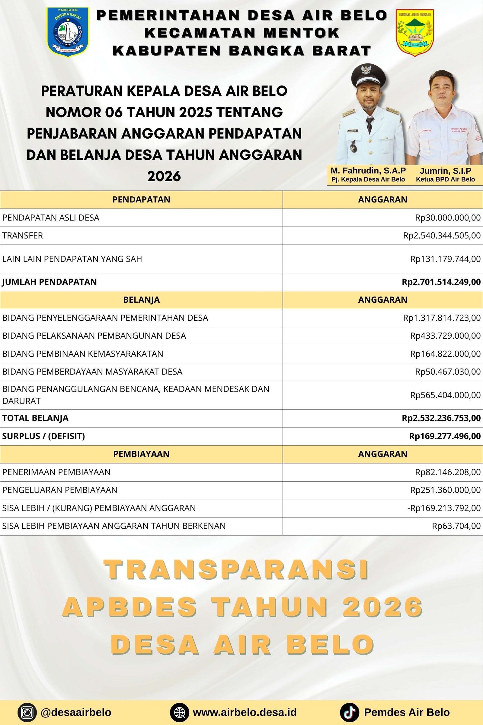 APBDes Induk Desa Air Belo Tahun Anggara...